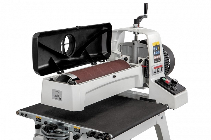 В штатном варианте поставки модель укомплектована алюминиевым барабаном с намоткой из абразивной ленты. Благодаря фирменной системе крепления её замена производится быстро и просто. Доступ к узлу освобождается после откидывания кожуха-пылесборника, концы фиксируются прижимами-защелками, натяжение производится специальным пружинным устройством, которое компенсирует вытягивание ленты в процессе износа.