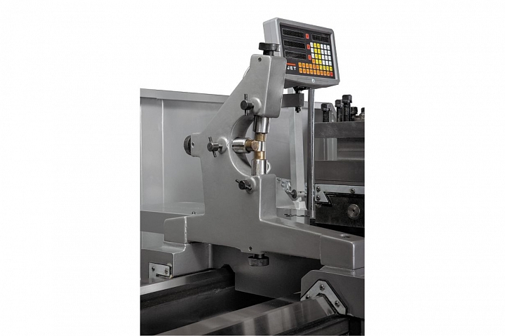 GH-2480 ZHD DRO RFS - универсальный токарно-винторезный станок промышленного класса производства компании JET. Он рассчитан на обработку массивных и тяжелых заготовок и способен выдерживать длительные нагрузки. Станок найдет применение на металлообрабатывающих производствах, в конструкторских бюро, предприятиях оборонной сферы и крупных реммастерских. Диаметр обточки над станиной стандартен для серии GH-24 и составляет 630 мм. Над поперечным суппортом можно обрабатывать детали диаметром до 370 мм, со снятым мостиком gapдо 830 мм с ограничением по длине 310 мм. Главное отличие GH-2480 ZHDDRORFS - увеличенное расстояние между центрами, у данной модели оно увеличено до 2000 мм. Для того, чтобы создать необходимый крутящий момент на шпинделе станок оснащен асинхронным электродвигателем мощностью 11 кВт, привод шпинделя погружен в масляную ванну для его охлаждения, снижения уровня шума и увеличения ресурса привода в целом. Также предусмотрена централизованная система смазки критически важных узлов и агрегатов. Автоматическая коробка подач имеет множество предустановок, выбирая которые можно выбрать необходимый режим работы, включая нарезку всех основных типов резьб. GH-2480 ZHDDRORFS установлен на высококачественную станину, отлитую по фирменной технологии JET. Жесткость конструкции обеспечивает эффективный отвод тепла от инструмента и гасит вибрации, возникающие при обточке. Станок поставляется в богатой комплектации, заказчик может немедленно провести его пусконаладку и запустить в работу.